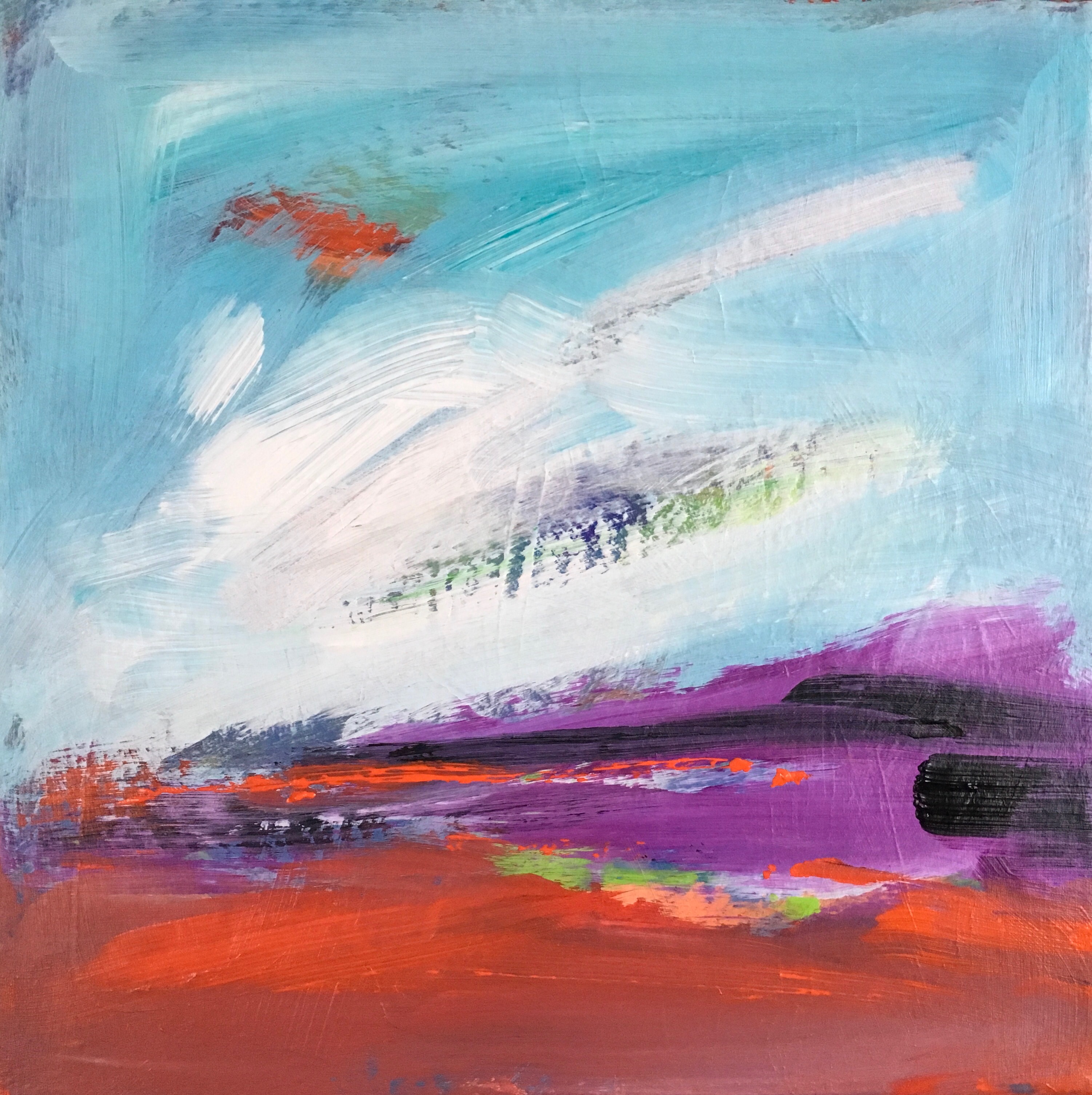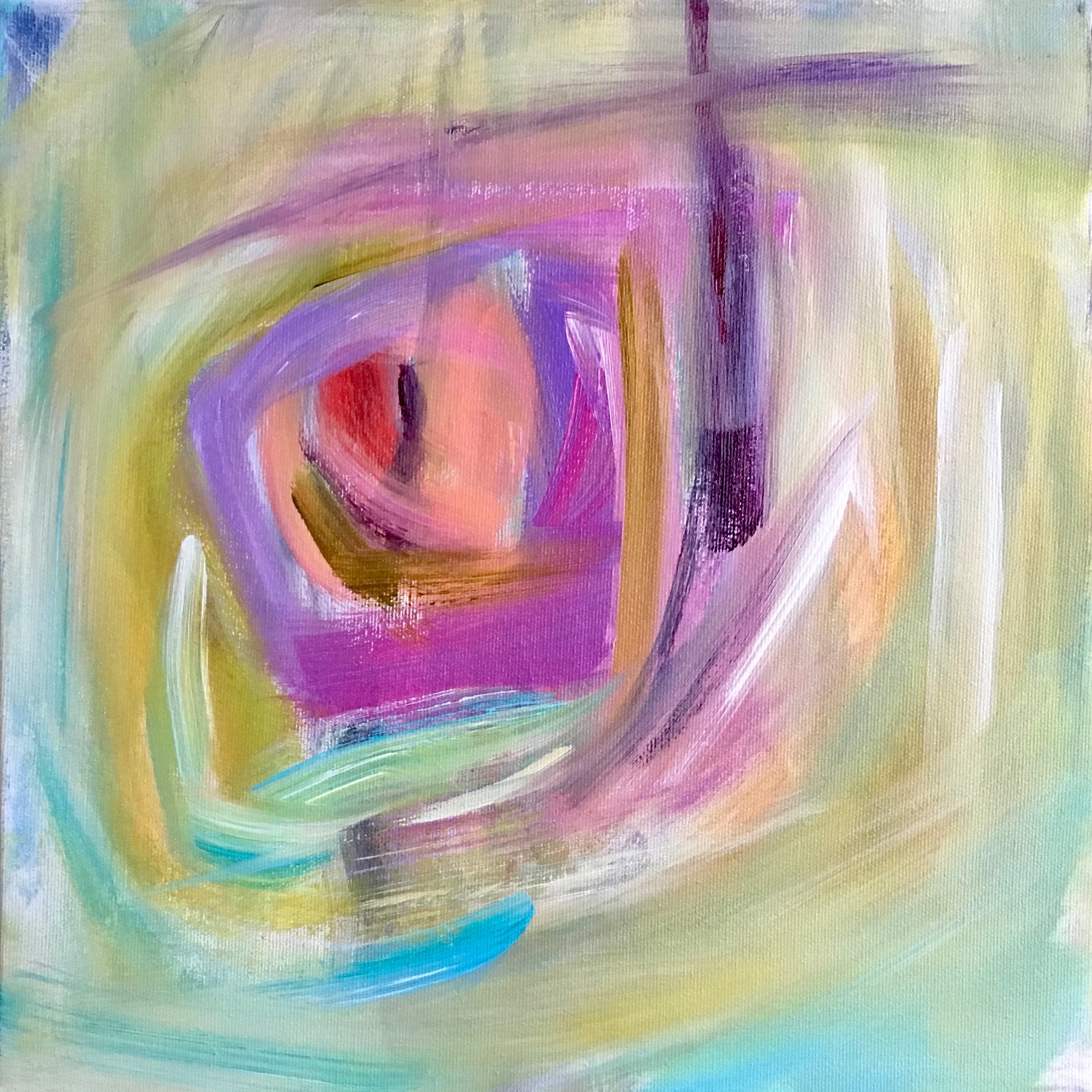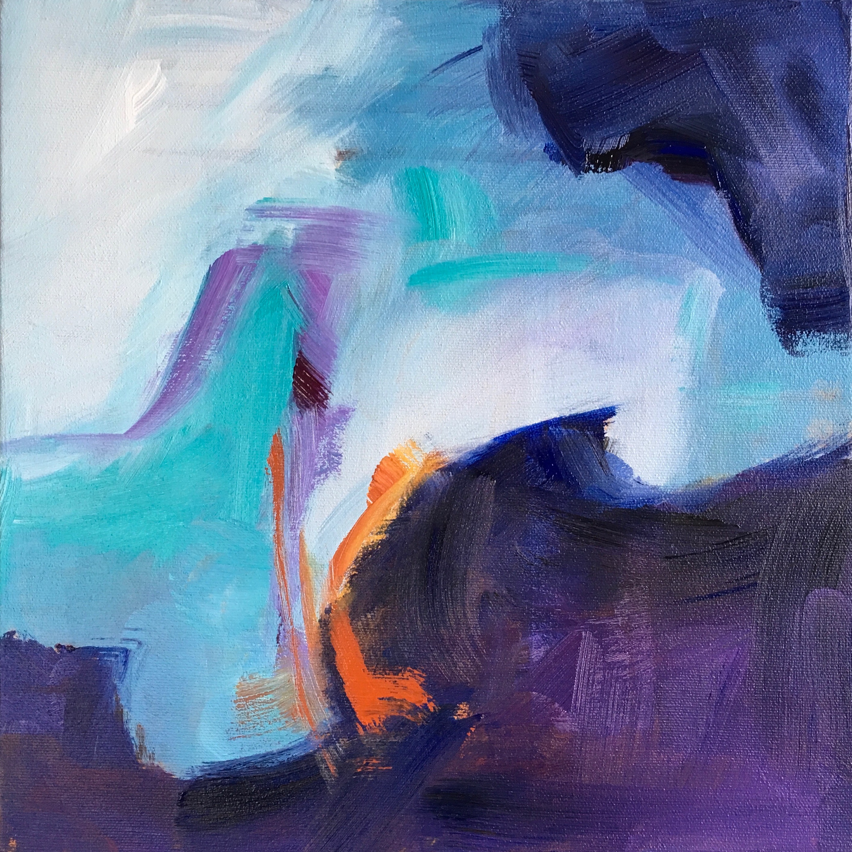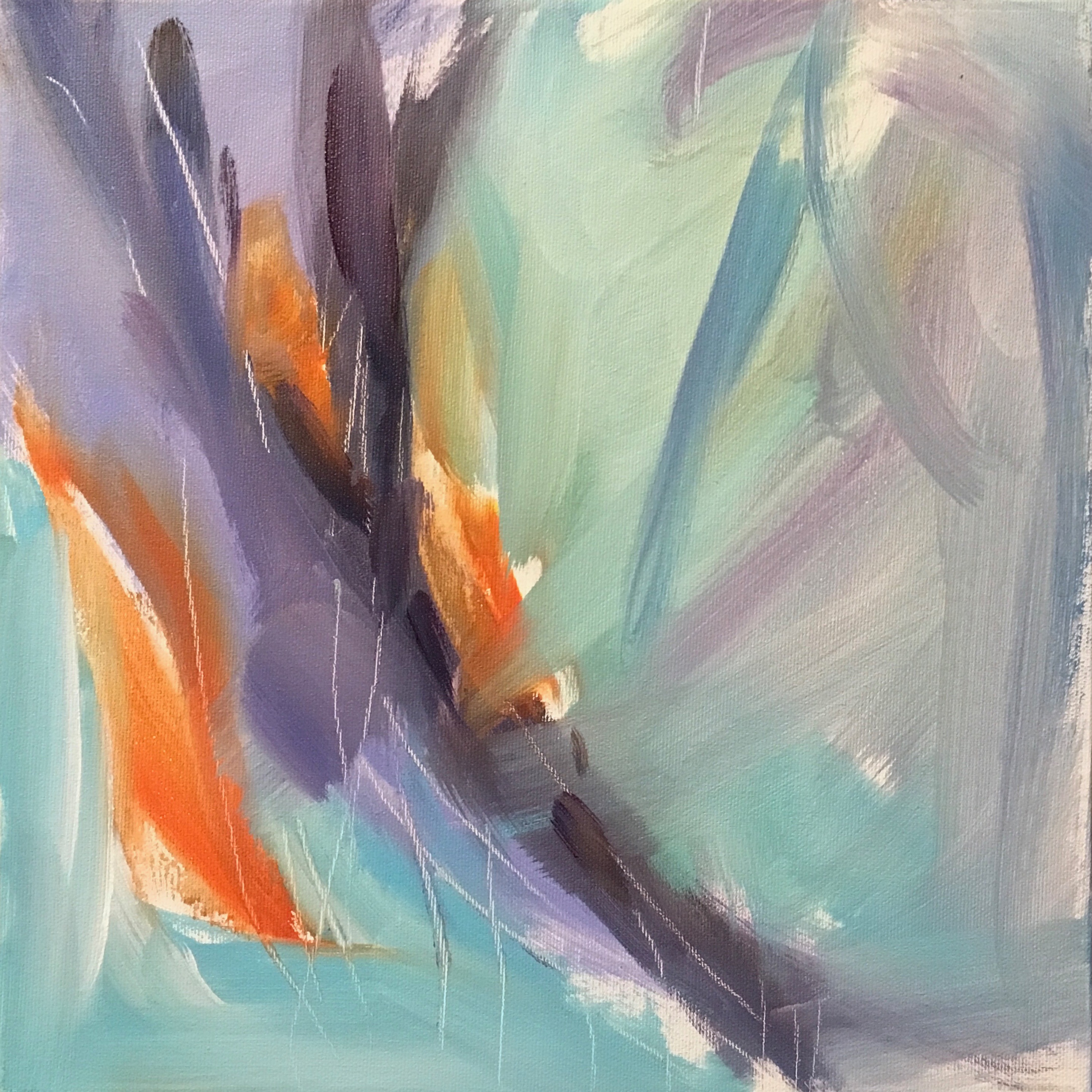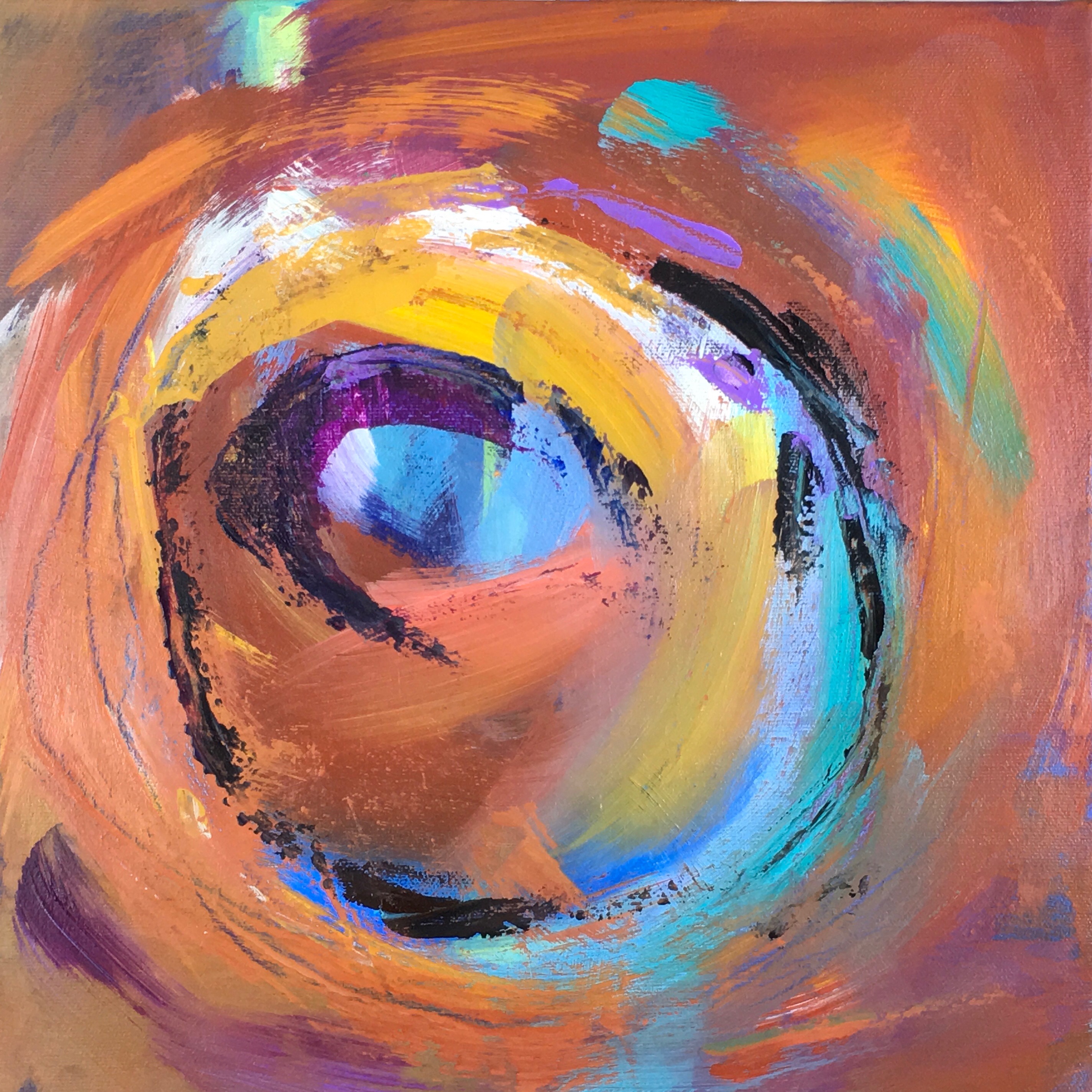 The pics at the top of the page are examples of the process that helped me to get my brush back into the paint. I gifted myself 15 to 20 minutes first thing in the morning (after letting the dogs out) to PLAY with paint on a 12″ X 12″ canvas. Stream of conscious scribbles with no plan! I painted over the previous days effort each day, which helped me to learn not be too concerned about the outcome. (I did take a pic so I can look back at my progress.) This was my time to Play. It worked! I started to look forward to my painting time again! Now I am painting at least 3 hours most days.