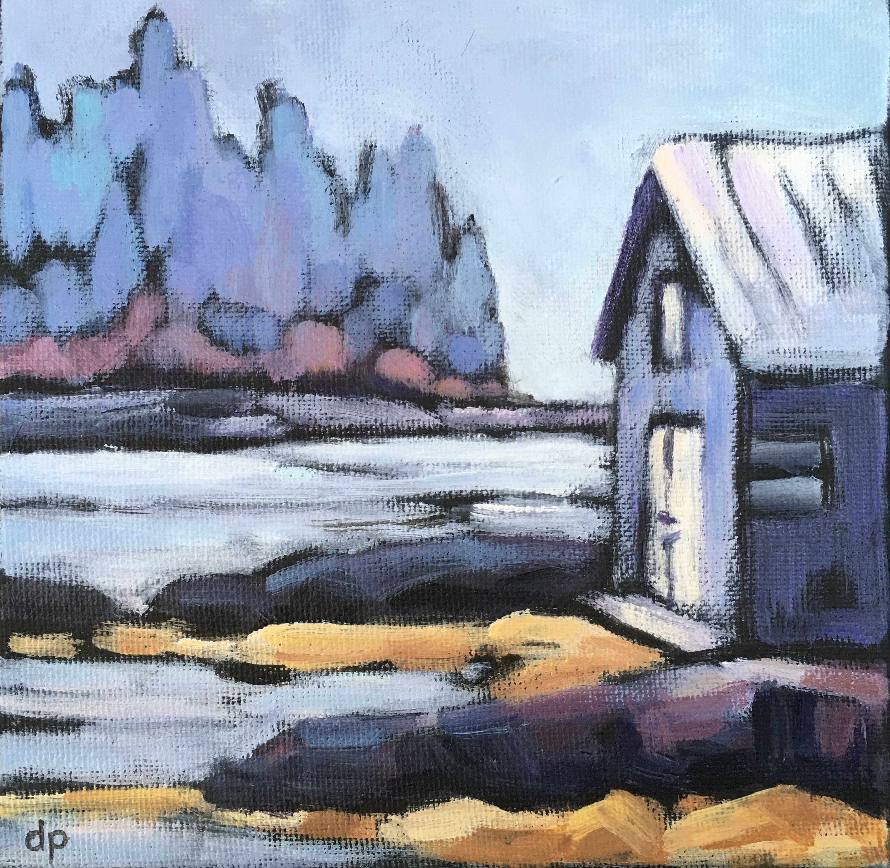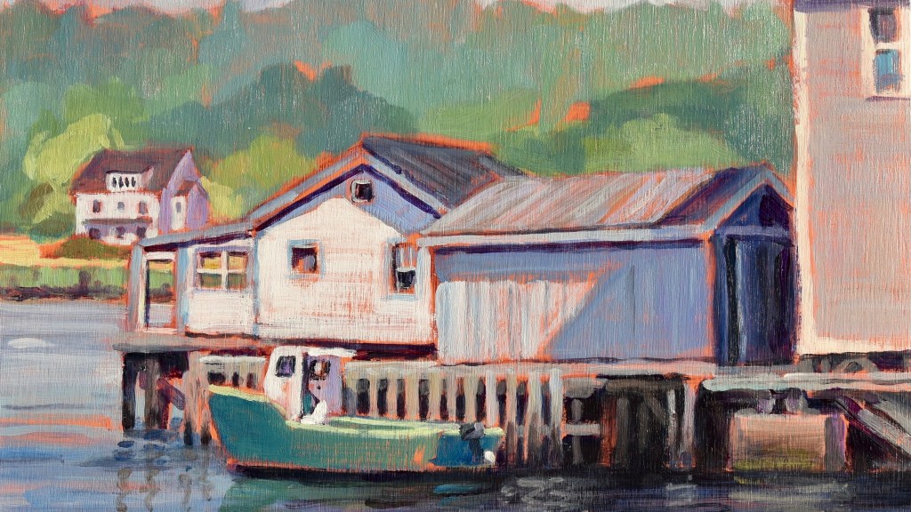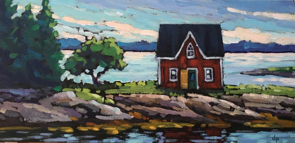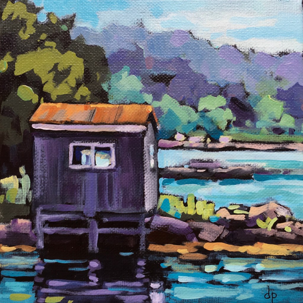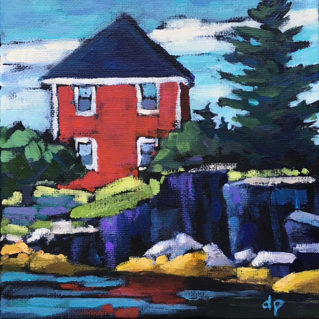 We have been living on the South Shore of Nova Scotia for just over a decade now. It didn’t take long for the beauty of the sea side to sneak its way into my paintings. I especially enjoy including a fishing outbuilding or two in the view!